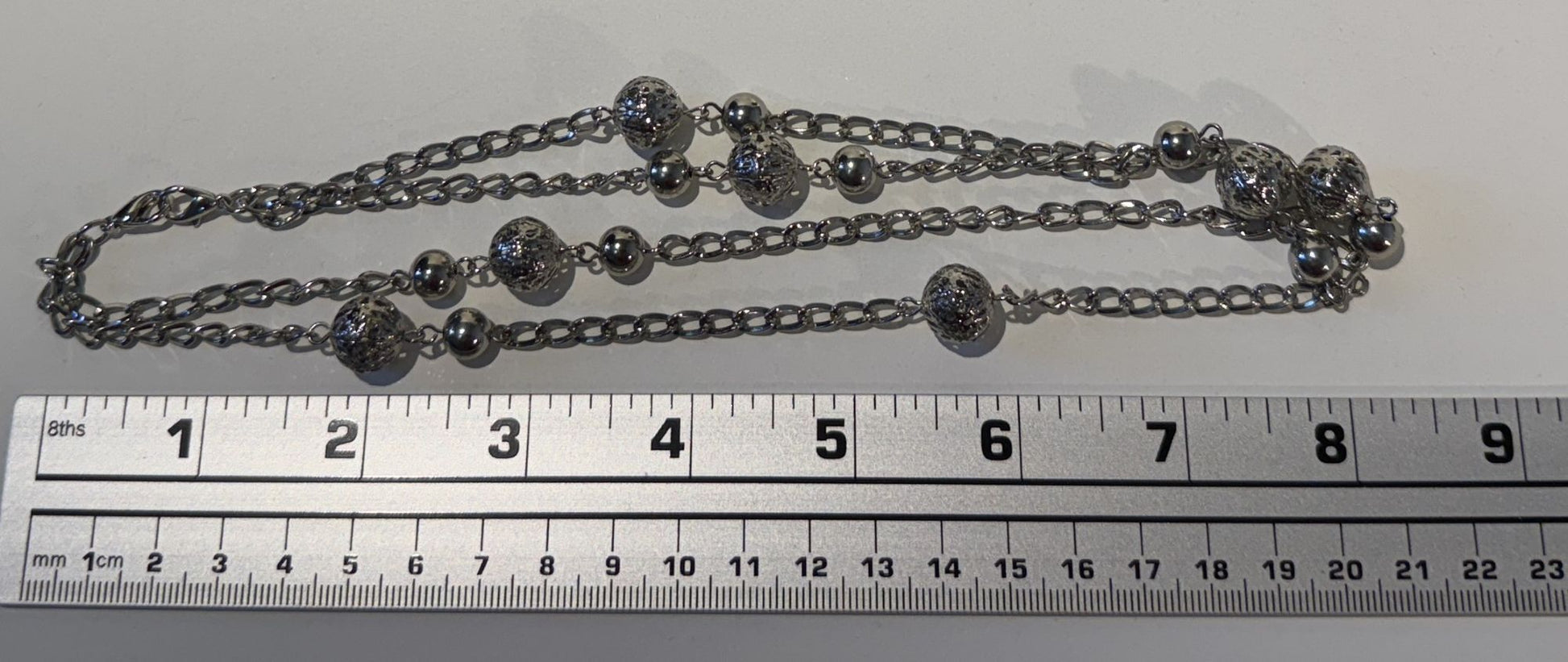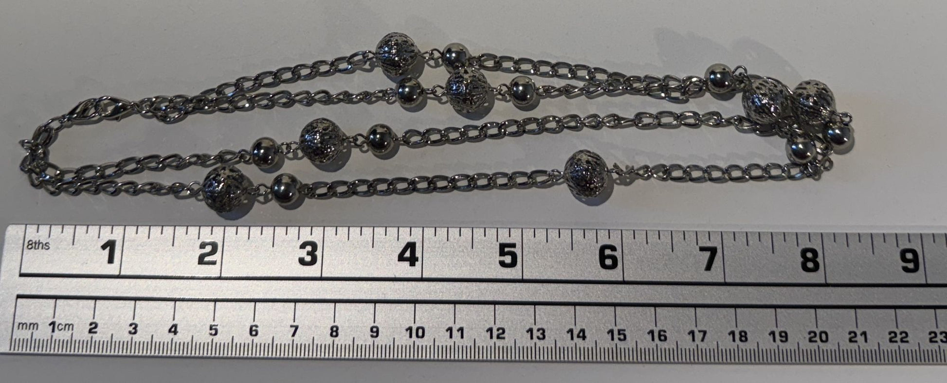 Bold yet versatile, this Silver-Tone Chunky Chain Necklace makes an instant style statement. Designed with a double chain for added dimension, it features a striking mix of pierced and solid silver-tone beads that catch the light with modern edge. Perfect for dressing up casual looks or adding polish to evening wear, this necklace brings a balance of strength and sophistication to your jewelry collection. #6268