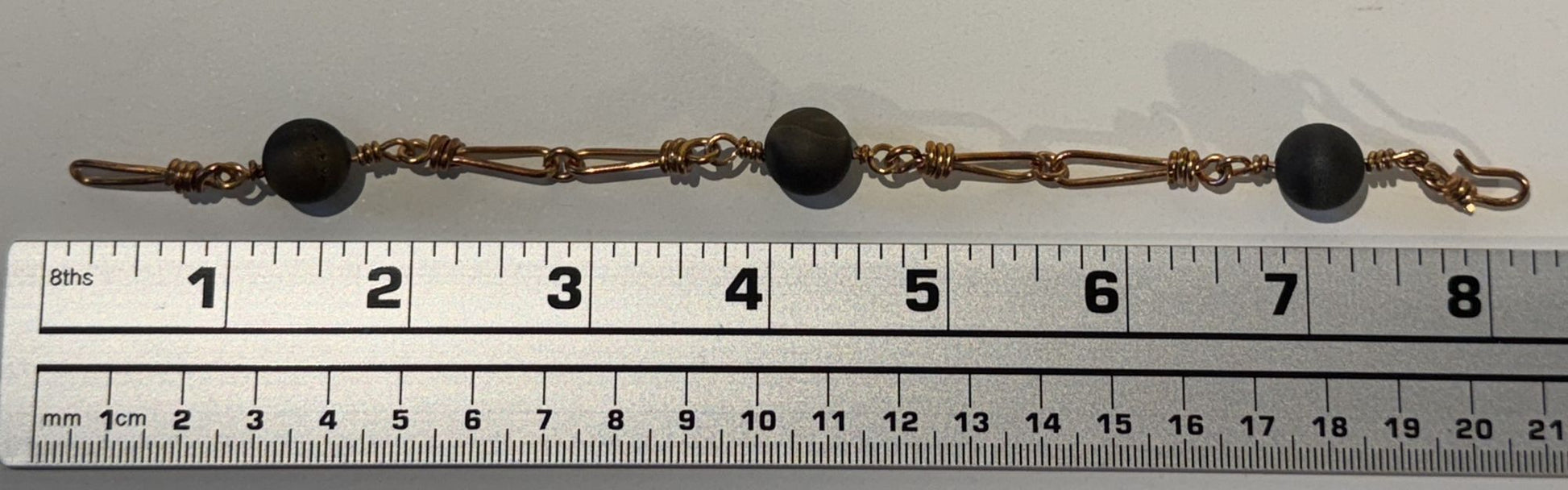 Unique and artisan-inspired, this Copper Bracelet features a handcrafted “paper clip” link design accented with warm brown beads for an earthy, organic touch. Finished with a convenient hook clasp, it’s lightweight, comfortable, and effortlessly stylish—perfect for everyday wear or stacking with other favorites. A true blend of rustic charm and modern simplicity. #6269