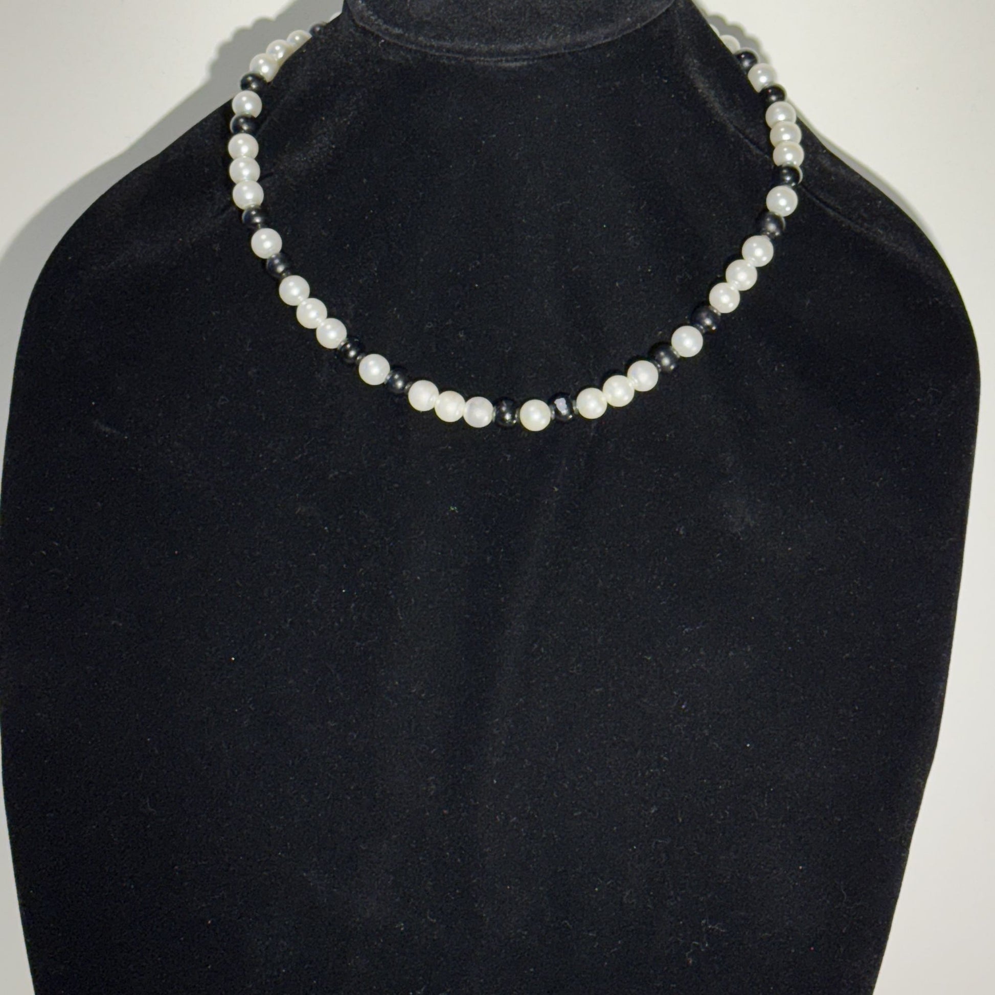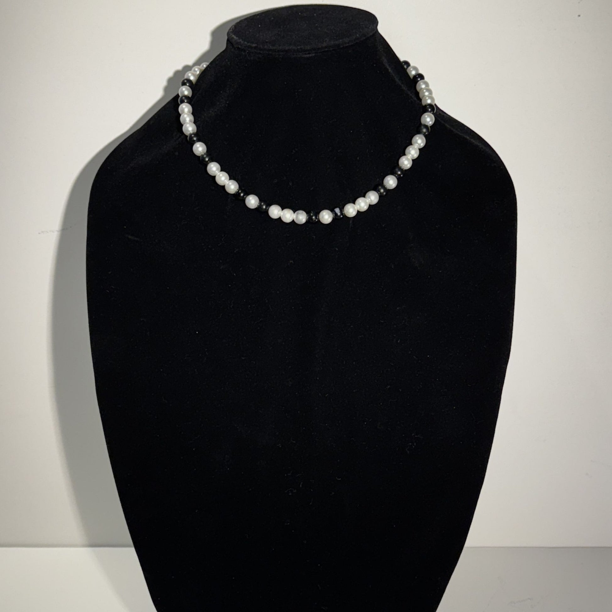 Classic and versatile, this necklace pairs luminous faux pearls with sleek black beads for a look that’s both timeless and modern. A perfect accessory to elevate any outfit, from casual chic to evening elegance. #6274